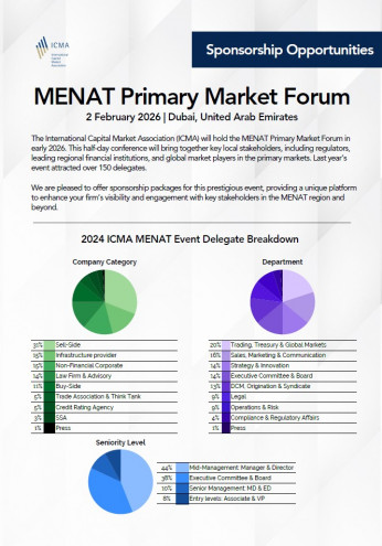 The Forum will bring these themes together through a series of keynotes, panel discussions and case studies designed to provide a comprehensive view of market developments. From the changing funding mix and the growth of local currency markets, to the increasing importance of regulatory alignment, digitalisation and innovation, the agenda highlights both the progress made and the critical enablers required for MENAT’s continued advancement. By convening key stakeholders, ICMA aims to foster dialogue, deepen market understanding and support the region in realising its full potential as a global primary market leader.