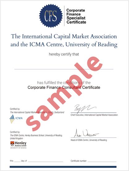 The CFC programme is jointly accredited by the International Capital Market Association (ICMA) and the University of Reading.